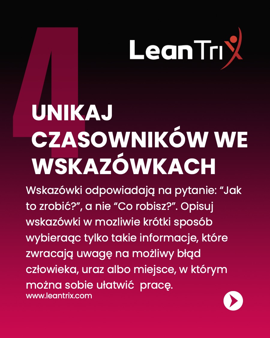 4. Unikaj czasowników we wskazówkach
